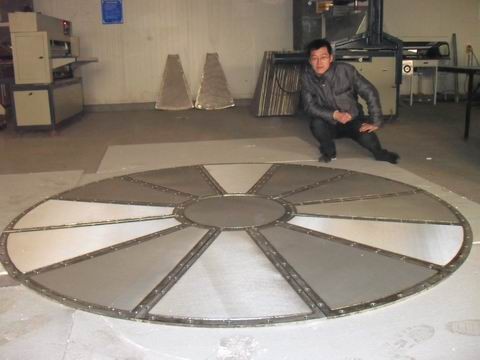 该滤盘是采用多层金属编织丝网,通过特殊的叠层压制与真空烧结等工艺制造而成,与法兰焊接成圆形滤盘或锥形滤器,主要用于制药、化工、食品等三合一和二合一设备中,取代传统的滤布,具有刚性好、强度高、更换周期长、清洗容易、装配简单等优点。常用材质为不锈钢304、316L,过滤精度为1~300μm,直径100mm~3000mm。