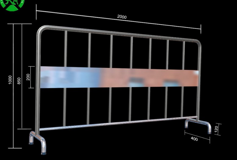 主要采用可拆接构件将护栏主片与底座或防护柱进行标准连接,等特定需要的时候可轻松拆除,进行移动安装。