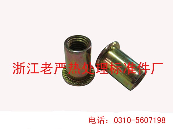 铆螺母又称拉铆螺母,拉帽,瞬间拉帽,用于各类金属板材、管材等制造工业的紧固领域,目前广泛地使用在汽车、航空、铁道、制冷、电梯、开关、仪器、家具、装饰等机电和轻工产品的装配上。为解决金属薄板、薄管焊接螺母易熔,攻内螺纹易滑牙等缺点而开发,它不需要攻内螺纹,不需要焊接螺母、铆接牢固效率高、使用方便。铆螺母的种类:平头 小头 六角 半六角铆螺母,有通孔的、有盲孔,有滚花和没有滚花的。