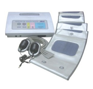 (三)针对皮下脂肪组织和肌肉组织的作用:该机应用了中医原理,通过对被绑部位的韵律按摩,使肌肉组织产生静态有氧消耗,分解与肌肉相混和的脂肪。其特有的高频振动器,可依需要贴于腹部、大腿、小腿的气囊袋上,通过每分钟五千转的标准振动频率,使疲劳的肌肉快速放松。当贴附部位处于充气状态时,其产生的强大共振力直达皮下脂肪深层,使皮下脂肪迅速松散、分解,亦可单独手持振荡器用突出的胶粒按摩颈部、脚心等部位,对消除身体各部位的酸痛、疲劳有很好的效果。通过该机对人体内部的调理和外部的治疗,使减肥、排毒、保健融为一体,内外兼顾、一次护理过后使人精神焕发、倦意全无,是健康减肥的最佳选择。
