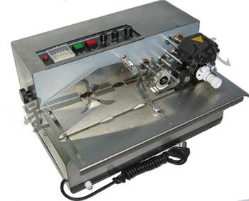 原理及特点: 固体墨轮打码机为接触式热打码机,采用间歇式自动加热和精密的机械相结合,可根据用户需要,任意选择打码内容与打码位置,并可设定打码张数,打码速度快,性能可靠,字迹清晰,打码动作及计数采用光电开关控制。