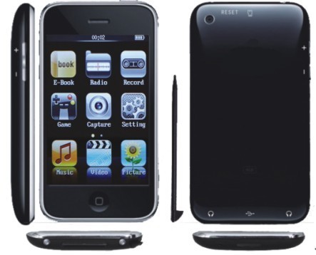 "2.8寸真彩TFT高清屏,支持高新技术34纳米全系列芯片:支持FLV,AMV,AVI,RM,RMVB,3GP格式电影播放,支持MP3/MIDI/WMA/WAV多种音乐格式,支持歌词同步显示,支持5种EQ均衡模式;高音质嗽叭和耳机双声道输出;内置多款经典小游戏;内置麦克风,超长时间录音;带30W像素 摄影DV和数码相机DC拍照功能;移动硬盘功能;USB全速2.0传输;支持多国语言,支持固件升级。触摸功能 带MINI SD扩充卡插槽 (带FM功能)