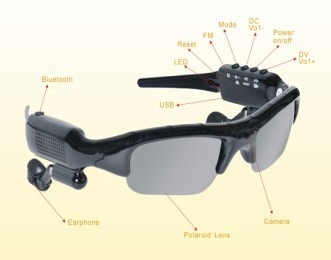 (MP3+摄像+照相)三合一数码产品 名厂出品高品质宝丽莱太阳镜片,130万像素摄像头清晰数码录影 ,轻松使用按键,操作简洁方便。流线型时尚外观设计符合人体工学佩带舒适,是记者,交警,旅行者不可或缺之必备品。直接可以连接电脑下载文件,无须任何驱动程序音乐格式; MP3/WAV/WMA,USB接口; USB2.0 ,连续播放音乐时间: 6小时左右 ,锂电池 :内置420MA聚合物锂电 ,最大输入电压 :5VDC ,耳机输出功率:5mw ,音频输出频率:20Hz-20Khz,失真度:0.05% ,信噪化:85db ,耳机阻抗:16 ,可伸缩性270度随意固定无线耳机 ,摄像头像素:130万像素,读取速度> 700kbs,写入>500Kbs,解析度:640*480,照相 ;1280*1024 ,内置1GB-8G 内存,摄录时间可达5个小时,自身净重含电池:39g 工作温度:0°C-60°C存贮温度: -20 C - 80 C, 操作系统: Win98,WinMe, WinXP, Win2000, Windows Vista