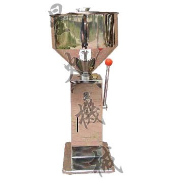 原理及特点: 该灌装机容量为50g, 使用时旋转容量调节钮,观看刻度表。指针对准你所需灌装的容量,然后扳动手柄试灌装。
