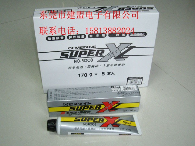 SUPER X (8008,8008L)颜色有黑色、白色.透明色。一液型速硬化弹性粘合剂、无溶剂、、无毒性、耐热、耐寒性好、用途广泛。合乎环保要求、减省工序、社合应用于污垢、危险及应用技术有困难的地方。