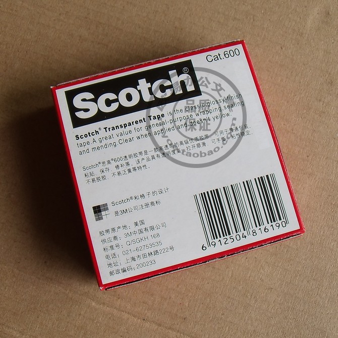 名称:美国3M SCOTCH思高透明胶带600 测试胶带600