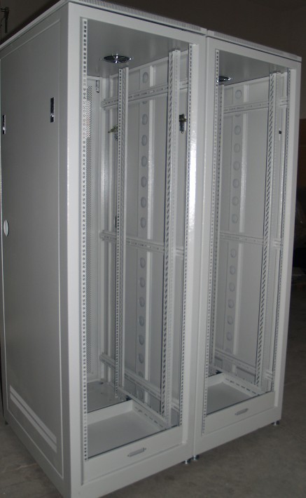 2.此机柜采用19”国际标准安装,国际流行色的钢化玻璃门或高密度网孔门,焊接框架结构,强度高,稳定可靠,3.分段式箱体结构,前门开启角度大于180度.4.可同时安装脚轮和支撑脚,亦可选配底座安装起固定作用,5.本产品广泛适用于网络,服务器,通信和工业控制等各个领域,通用性强
