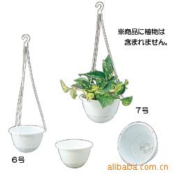 配吊钩,使用简便。本体与托盘于一体,简单美观吊式花盆。托盘为旋转触动式,便于连接。底部为网状,通气性能良好。