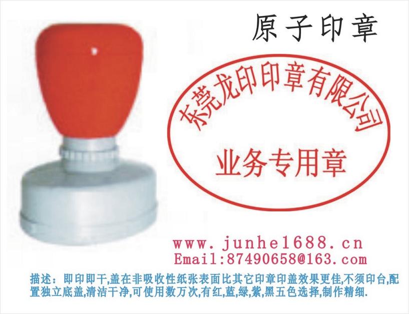 原子印特点:原子印是采用1972年美国庄臣公司发明的原材料制作而成,龙印原子印是目前商务活动中广泛应用的印章之一,属国际第二代产品,外形美观,印面清晰,无需印台、无需加油,即盖即干,携带方便,绝不褪色等特点,机器检测可以使用36000次以上。适用于:各类部门章。合同专用章、业务专用章、报关专用章及其他工作用章等。不适合银行印签印章。电子印 印迹清晰,字迹的干涸时间短,附着力强,具有较强耐水性。成品外形美观、结构合理。使用次数为2-3万次。渗透印特点:渗透印:印迹较原子印略次,自带印油,使用方便,可反复加油使用。经济耐用,携带方便。但章迹干涸时间较长,使用次数为1-2千次,并可反复注油。适用于做地址、公司名称、文件更改、邮件收发印等方面适用于:合同专用章、业务专用章、报关专用章及其他工作用章等