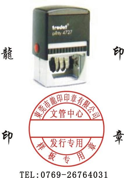 原子印特点:龙印原子印是目前商务活动中广泛应用的印章之一,属国际第二代产品,外形美观,印面清晰,无需印台、无需加油,即盖即干,携带方便,绝不褪色等特点,机器检测可以使用36000次以上。适用于:各类部门章。合同专用章、业务专用章、报关专用章及其他工作用章等。不适合银行印签印章。电子印 印迹清晰,字迹的干涸时间短,附着力强,具有较强耐水性。成品外形美观、结构合理。使用次数为2-3万次。渗透印特点:渗透印:印迹较原子印略次,自带印油,使用方便,可反复加油使用。经济耐用,携带方便。但章迹干涸时间较长,使用次数为1-2千次,并可反复注油。适用于做地址、公司名称、文件更改、邮件收发印等方面适用于:合同专用章、业务专用章、报关专用章及其他工作用章等东莞雕刻印章,东莞印章刻制,东莞印章制作,东莞原子印章,东莞日期印章,东莞回墨印章,东莞皮带印章