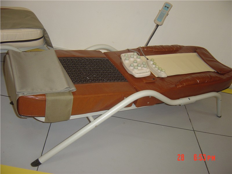 产品简介: 远红外线按摩理疗床通过柔软的滚轮和振管对人体各重要穴位(尤其是背部、脊柱两侧)的按摩刺激、远红外线热疗和磁疗的综合作用,治疗和缓解因脊柱退变引起的一系列颈、肩、腰腿痛症;通过督脉和足太阳膀胱经的经络调整作用而发挥人体整体机能