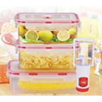 为了满足现代社会高质量生活的需求,本公司推出了真空保鲜盒,它可以让食品进入真空状态,与外界空气隔绝,免除空气中细菌污染,做到食品的真正保鲜。独特的抽真空设计,让食物长期保持在真空的密封状态。真空保存对食物的好处在于真空能防止食物吸收湿气和氧化及防止气味产生,可有效地延长保鲜时间,保鲜时间比普遍的保鲜盒更长。长时间抽真空能使盒内减少空气,保持贫气状态,不但有利于乳酸发酵,防止败坏,而且也有利于维生素的保存延长食物保鲜期。
