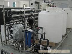 反渗透主要是用于水质净化方面,其原理是在压力的作用下,水分子通过反渗透膜成为纯水,水中的杂质被反渗透膜截留排出。反渗透是目前最先进的也是最节能的一种脱盐方式。反渗透工艺方法在实际应用中主要用于去除水中溶解盐、离子、小分子微粒、有机物,细菌、病毒、放射性离子等杂质,盐份去除率一般在98%以上,它的应用范围广、主动化程度高、占地少、能耗低、出水水质好等优点。成套纯水处理,纯水处理,超纯水处理设备,纯水处理设备,超纯水设备,纯化水处理。
