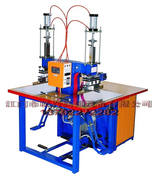 江门联兴的高频机拥有强力式机头,压力可随意调校:PVC高频机机头设计利用节推动杠杆原理,能使PVC高频机压力均匀,上落平稳,高频机机头压力轻重可任意调节,以配合不同熔接深浅度的需要,高频机机头灵活方便,加上备有双重弹簧,踏力轻,压力标准。