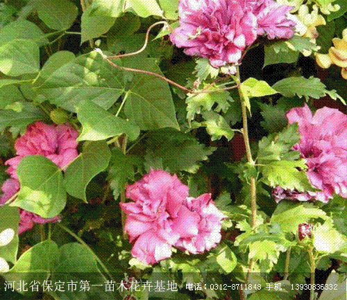 木槿为锦葵科灌木或小乔木,原产于亚洲东部,花艳丽,作为观赏植物广泛栽种。高可达3公尺(10呎),通常低分枝,植株呈塔形。花似锦葵,白色、粉紫色到紫色,基部一般深红色;某些品种有重瓣花。藤黄科的大萼金丝桃也称木槿。河北保定市第一苗木花卉基地信誉第一、质量第一、服务第一、友谊第一、价格透明、送货快捷、代开检疫、专车接送,保证苗木成活率。承揽各种绿化工程。产品有红花酢浆草、紫叶酢浆草、金娃娃萱草、大花萱草、荷兰菊、金焰绣线菊、美人蕉、紫叶矮樱、紫薇、红叶碧桃、木槿、红王子锦带等。欢迎与我们取得联系0312-8711848或者登陆我们的网址http://www.miaomu186.com/ 了解详情