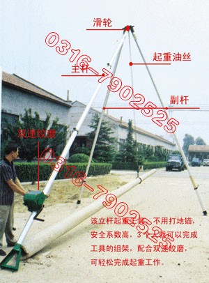 铝合金立杆器由三根杆组成,所以又被称为三脚立杆机或三脚架立杆机。