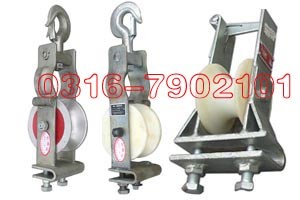 用于直线杆上延放铝线和钢芯铝绞线,钳压管可以从轮槽内通过,滑车悬挂部分,有吊钩式和挂板式.