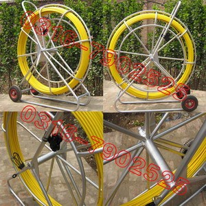 电缆引线器主要由玻璃纤维与高强度树脂经过高温拉挤成玻璃纤维线。这种线具有很高的抗拉强度并有良好的柔韧性,玻璃纤维线外表由高密度聚乙烯工程塑料制作层的护套层,使引线器外表光滑、耐磨,耐老化,耐酸碱、具有良好的的绝缘性能使他用在有电缆的管道里的时候很安全。