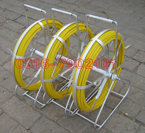 管道穿线器主要由玻璃纤维与高强度树脂经过高温拉挤成玻璃纤维线。这种线具有很高的抗拉强度并有良好的柔韧性,玻璃纤维线外表由高密度聚乙烯工程塑料制作层的护套层,使管道穿线器外表光滑、耐磨,耐老化,耐酸碱、具有良好的的绝缘性能使他用在有电缆的管道里的时候很安全。