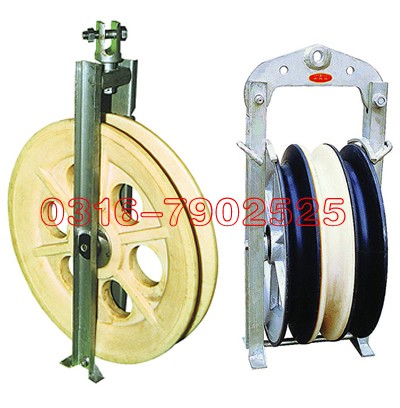 用于直线杆上延放铝线和钢芯铝绞线,钳压管可以从轮槽内通过,滑车悬挂部分,有吊钩式和挂板式.