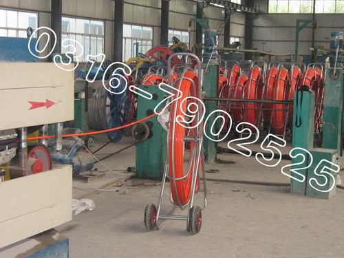 电缆通管器主要由玻璃纤维与高强度树脂经过高温拉挤成玻璃纤维线。这种线具有很高的抗拉强度并有良好的柔韧性,玻璃纤维线外表由高密度聚乙烯工程塑料制作层的护套层,使通管器外表光滑、耐磨,耐老化,耐酸碱、具有良好的的绝缘性能使他用在有电缆的管道里的时候很安全。