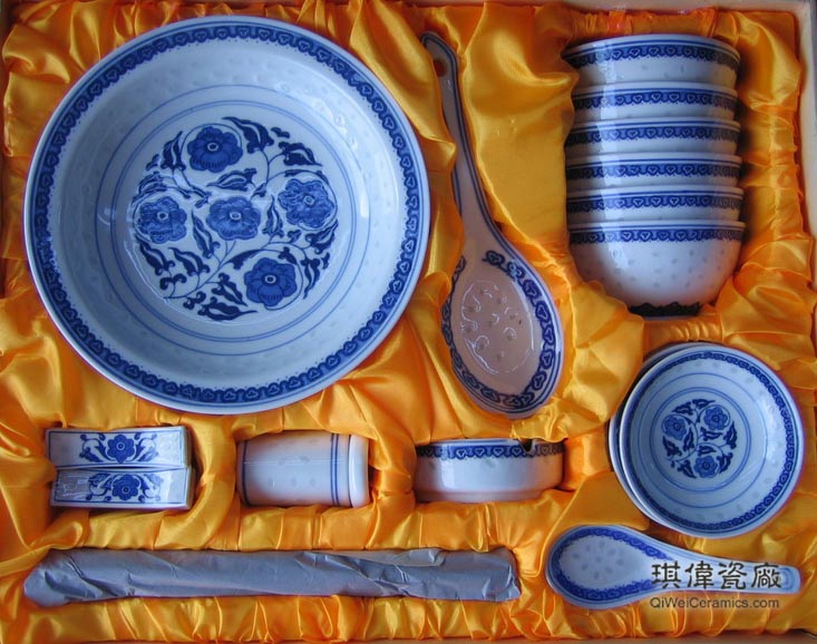 传统经典的青花玲珑图案,经典的青花玲珑工艺图案,可以从玲珑眼里看到晶亮的光芒,青花玲珑是景德镇具有明显地方特色、闻名中外的传统品种,玲珑眼多为米粒状,也有水点状、浪花状和兰花瓣形、桃形、菱形等,俗称"芝麻漏",又称"米花".日本人称"米通""萤手",西方人把玲珑瓷器叫做"嵌玻璃的瓷器".青花玲珑既吸收了青花艺术之特长,又采纳了镂雕艺术之妙法,是两种装饰艺术相结合制成的瓷器,它以莹透素雅的风姿,为人们所赞赏.青花玲珑具有独特的艺术风格。