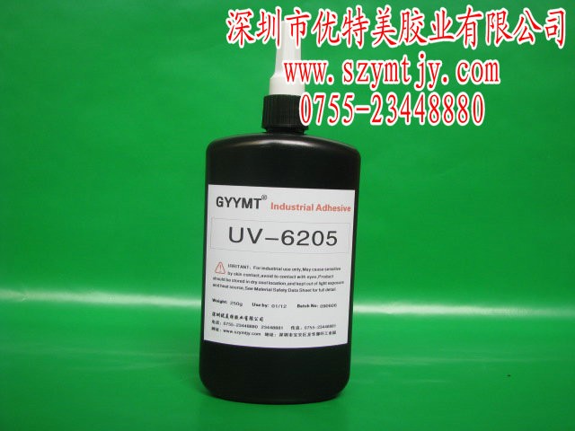 深圳市优特美胶业有限公司专业生产销售GYYMT(固优)品牌6000系列紫外线胶水、无影胶水、UV胶水、光固化胶水、太阳胶水,光敏胶水。主要用于粘接、固定表面披覆等是一款不含溶剂的环保胶粘剂,在紫外线照射下数秒钟内固化.UV-6205产品主要于电子产品、LED杯、PCB板,安防产品,滤光片等产品。具有耐黄变、高韧性、耐冷热冲击性能优良,是电子行业首选产品。