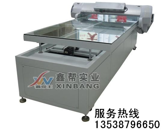 装饰板材彩印机。万能产品打印机采用专用防水墨水: 清晰完美的印刷质量,层次分明,色块全部可见,无偏色、混色现象,防水,耐磨,品质非热转印、丝印等传统工艺可比。万能产品打印机可打印任何材质及不规则软、硬性物体,比如金属,陶瓷,水晶,玻璃,压克力,PVC,地板、塑料,T恤、玩具,皮革,U盘,布料,木质,硅胶等无需出菲林制版,比传统印刷降低50-80%的成本。。外观设计: 整体,简捷,操作简单,方便,完全人性化科学设计。追随主流采用了全黑色外观设计。主要的按键安排在机体右方,因此从正面看,面板的外观显得非常朴实,而且线条简洁,利落。
