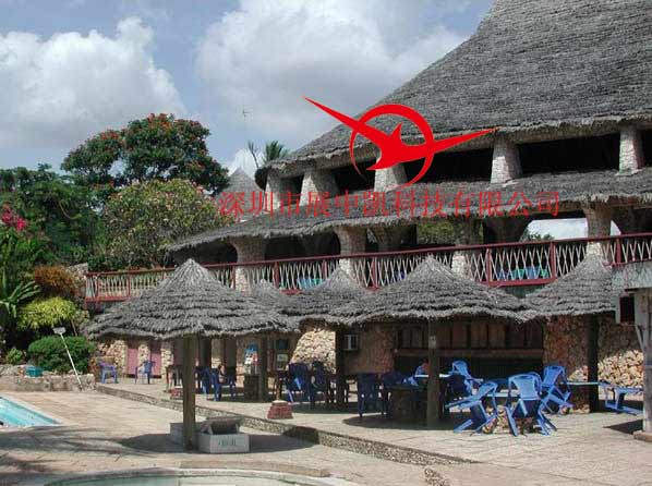 深圳市展中凯科技有限公司 仿真茅草色泽清新高雅、绿色环保;可以美化环境、烘托出回归自然的效果,还能减省每年的维修费用;是仿天然茅草屋最理想、最实用的装饰材料。它不受任何场地环境限制,有着异常广阔的应用领域: