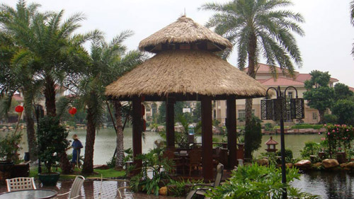 展中凯是中国最优秀的景观仿茅草建材、园林建材仿真茅草、仿茅草、仿稻草生产销售厂家,仿茅草系列品牌在茅草屋面装饰建材产品领域中处于领先市场地位。做为茅草屋面人造茅草产品,仿茅草瓦在欧洲已有20多年的应用历史,并被广泛应用于各种景观园林、渡假别墅、酒店和一些休闲建筑领域。随着国家节能政策的实施,仿真茅草、仿茅草因其独特的防火功能,较高性价比和绿色环保等特性,具有极为广阔的市场前景。深圳市展中凯科技有限公司,引进国际先进技术、国内领先的连续生产线,专业生产茅草屋面建材仿茅草、仿稻草产品。该产品具有卓越的防火性能和理想的仿真效果,并且较强的防风功能、颜色自然多样、款式新颖大方,尤其在防火和防风方面达到了国际先进水平、赢得了市场的认可、受到了用户的欢迎。