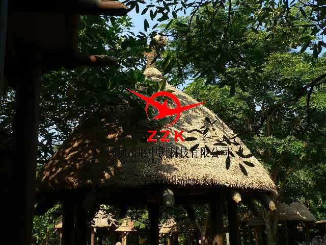深圳市展中凯科技有限公司生产的安心仿真茅草瓦(Synthetic Thatch)产品优点为:草须长度:比市面一般产品草须长度增加、从而增加产品重叠厚度及屋檐草效果。结构设计:草须设计宽度适中、长短排列多样化,两种款式即能达到多种款式效果,方便工人安装、省时易铺均匀、节省成本、效果特佳。更好的工作效率与更精美的效果!产品特性:仿真效果特佳 安装简便 防火防风 使用寿命长