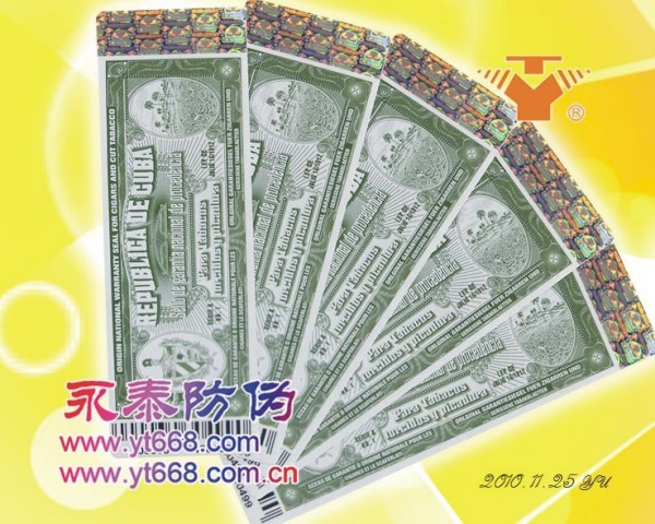 经营范围:激光防伪商标、激光面刮开电码防伪商标、揭开留字防伪商标、易碎防伪商标、电码防伪商标、刮开数码防伪商标、纸面揭开防伪商标、纹理防伪商标、浮雕版纹防伪商标、微缩防伪商标、服装皮具防伪吊卡、全息对位烫印、隐形加密防伪商标、3D立体防伪商标、水印及纤维纸防伪印刷、水印隐形防伪商标、800免费查询防伪商标、不干胶防伪商标、镭射防伪商标、数码防伪商标、流水号打码防伪商标、温变防伪商标、穿织安全线防伪、水产禽类吊牌、合格证防伪标、遇水消失线防伪商标、PVC烫印防伪优惠卡、银行卡、刮刮卡、游戏卡、贵宾卡、积分卡、精美优惠券、中奖促销现金券、代金券防伪印刷、高难度防伪商标……
