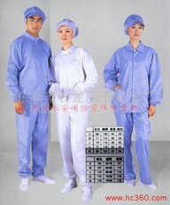 6. 款式:大褂、分体服、连体服(可选连体帽和披肩帽、软底长筒靴和硬底长筒靴)。7 颜色:白色、蓝色、粉红色。 防静电服广泛应用于电子、医药、生物工程、光学、航天、航空等行业