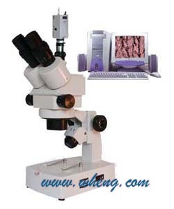 电脑型连续变倍体视显微镜是将精锐的光学显微镜技术、先进的光电转换技术、普通的电视机完美地结合在一起而开发研制成功的一项高科技产品。从而,我们可以对微观领域的研究从传统的普通的双眼观察到通过显示器上再现,从而提高了工作效率。