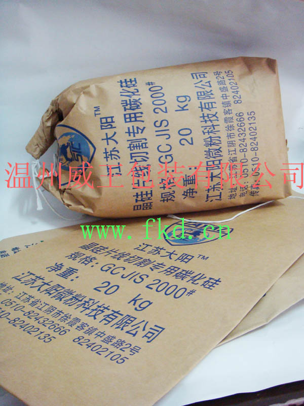 碳化硅包装袋,基本目前用三层纸袋比较多,因为涉及到产品的定位,像此类包装袋是用手拉绳卷制后绳打结,即可包装,包装非常方便使用,美观大方