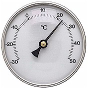 在测量一些较难接触到的钢质产品如桥梁、大型钢结构建筑、石油钻机等场合,磁性钢板表面温度计是一种低成本且非常实用的温度测量工具。磁性钢板表面温度计可以放置在较难测量的部位,直接吸附在产品表面,使用者可以直接读值而不必再手持机器测量。机器有一个坚固的金属外壳,表蒙使用钢化玻璃制成并与金属外壳固定以保证其耐用性。机器通过固定在外壳内的双金属簧片实现,将机器吸附在钢板表面后,双金属片的移动可以传导给指针,操作者直接读值即可。仪器表盘上的刻度是粗题黑字,指针用黑金属制成所以很容易读数。仪器为机械式不用电池。
