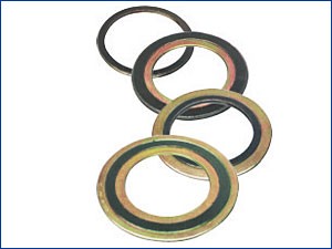 金属缠绕垫片采用优质SUS304、SUS316(“V”形或“W”形) 金属带及其它合金材料与石墨、石棉、聚四氟乙烯、无石棉等软性材料相互交替重迭螺旋缠绕而成,在开始及末端用点焊方式将金属带固定。金属缠绕垫片为半金属密合垫中回弹性最佳的垫片,金属缠绕垫片结构密度可依据不同的锁紧力要求来制作,并利用内外钢环来控制其最大压紧度,缠绕垫片接触的法兰密封面的表面精度要求不高。金属缠绕垫片特别适用于负荷不均匀、接合力易松弛,温度与压力周期性变化、有冲击或震动的场合。缠绕垫片是阀门、泵、换热器、塔、人孔、手孔等法兰连接处理想的静密封原件。