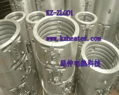 铸铝加热器(圈)的正常厚度有20mm和25mm,其中25mm壁厚的电热圈其内壁采用凹凸的风槽结构设计,目的是为了在使用时防止内部加热管温度过高,例如在温度高的时候可以在内壁采用风冷却或水冷却,使得其迅速达到使用标准温度。同时加热圈基本上采用的是将圆形对半分开,制成两片半圆形的,然后通过用固定螺栓将其固定安装。详情请输入网站http://www.kzheater.com 订购热线;0512-81865711