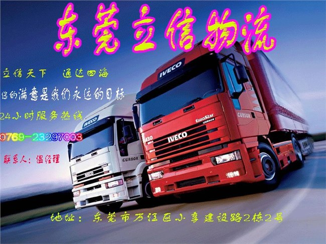 找东莞到哈尔滨物流专线最方便最快捷最安全的货运公司向您推荐东莞市立信物流有限公司。我公司是一家专业从事货运、物流、调车的公司;东莞市立信物流有限公司被评为东莞A级诚信货物运输代理公司,是经东莞市工商行政管理局、东莞市国家税务局、东莞市交通局联合批准成立的,具有独立法人资格的综合性运输企业。业务范围包括:道路危险品运输、道路普通货物运输、国内货运代理、仓储、配送、快递、搬家迁厂、大型设备吊装、特殊车辆运输。