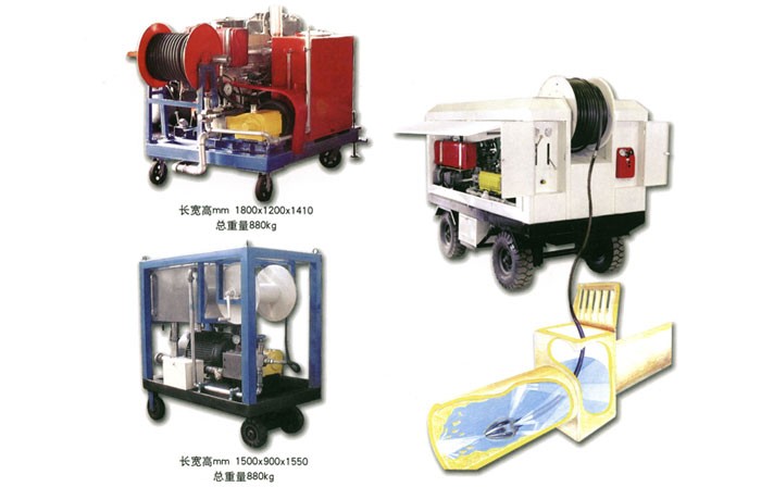 移动式下水道清洗机用于疏通、清除管道中的淤堵和污物。它以柴油机为动力驱动高压泵运转,利用高压水射流在喷头上产生的推进力疏通管道。当喷头到达管端时,胶管在卷管器拉力作用强制后移动。此时,高压水清扫管壁并将杂物带至管外,以达到清洗管道的目的。该清洗机采用液压马达驱动节流调速的控制油路,及以操纵盘为中心的集中控制方式,结构先进、造型新颖、操作和使用方便,是现代化市政单位必备的清洗设备。特别适合市政、城管、环卫部门清洗、疏通市政管道。可以根据客户要求,设计为拖挂式、车载式