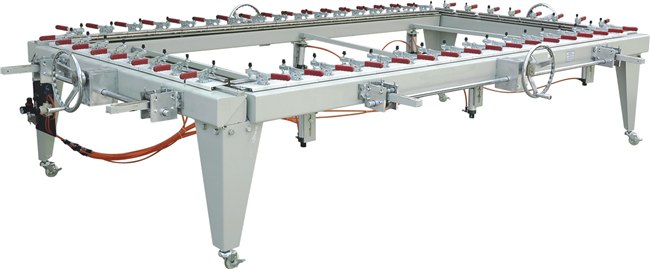 大型机械式拉网机:本机采用涡轮螺杆传动,拉网时省力,网版张力最高可达40牛顿以上。夹头全部模具冲压,定位准确,行走顺畅,大大降低了破网的机率。特别适合大型玻璃、印花、广告等印刷行业制作大型网版之用,也可方便的一次性拉多个小网版。