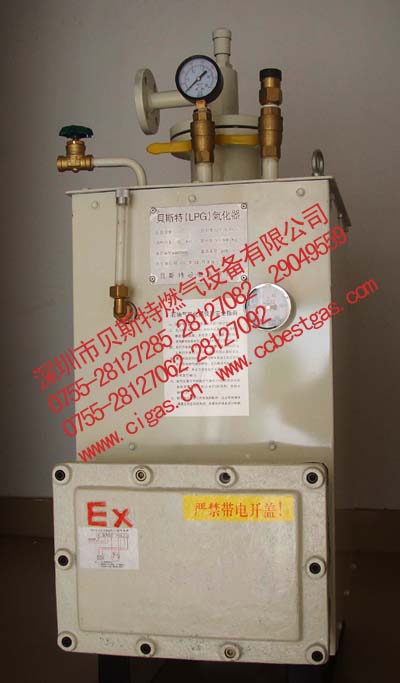 深圳市贝斯特燃气设备有限公司专业提供CPEx系列中邦防爆气化器(又名化气炉)是强制气化液化石油气、液氨等液相气体的一种装置、适用于工业厂矿、住宅小区管道供气、饮食业厨房、烘焙、烤漆涂装和大型温室采暖和燃气供应系统,它能够很好的解决钢瓶中的LPG液化石油气(煤气)大量残余和管道起霜起冰结冰现象,防止压力不稳定,从而保证连续供气(深圳贝斯特公司,0755-28127285www.cigas.cn)。LPG液化石油气煤气管道钢瓶结冰结霜,瓦斯管道/液化气管道钢瓶结冰结霜,供气不足,压力不够,请找贝斯特气化器/汽化炉为您解决!30KG/50KG/100KG/150KG/200KG/300KG/400KG/500KG液化气汽化器/液化气气化器/液化气汽化炉/液化气气化炉/电热水浴式气化炉/气化器。