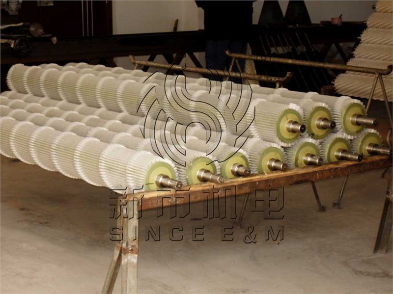 水果蔬菜清洗机毛刷辊:产品有切菜机毛刷、削肉机毛刷,蘑菇清洗机毛刷、毛发去杂去皮机毛刷、洗果机毛刷,豆、蒜类去皮机毛刷,油榨机毛刷。水果、蔬菜等工业化生产时,用尼龙的刷辊对各种水果、胡萝卜等农业作物进行清洗,要求刷丝抗压、弹性好,但又不能擦伤水果和蔬菜。食品机械毛刷材料采用PA6,PA66,611,612,1010丝等,辊芯使用45#圆钢或不锈钢件,注塑,植入耐高温尼龙刷丝,用于清洗水果表面污垢和表面打蜡;刷毛为防菌尼龙1010耐温耐磨刷丝,刷丝不回弯,不脱落。食品毛刷广泛用于各种蔬菜、水果保鲜前机械清洗、去皮、去农药残留等作用。刷辊表面毛刷可根据需要剪毛成波浪状,由凹凸相应的两条刷辊为一组,便于清洗水果及蔬菜,达到更高的清洗效果。去皮清洗机毛刷辊适用于胡萝卜、白萝卜、土豆、红薯、苹果、桔子、元葱、山药、辣根、生姜等根茎类物料的清洗、去皮。刷辊材料经特殊工艺处理,经久耐用,耐磨性能好。通过毛刷辊滚动及连续清洗作业,能有效的去掉物料表皮及杂物,清洗效率高。