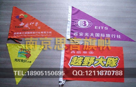 专业生产直销各种旗帜(特殊类型旗帜尽显个性),有传统的手工丝网印刷系列产品,而且引进了目前世界上最为先进的热升华数码直喷印花机,不但有双透效果的直喷印,而且不受数量和图案的限制。旗帜经过高温加工,上色牢固、色彩鲜艳、图案逼真、双面效果、不易泻色。整个生产过程无任何的污染产生,产品达到欧洲的环保检测标准。QQ1211870788