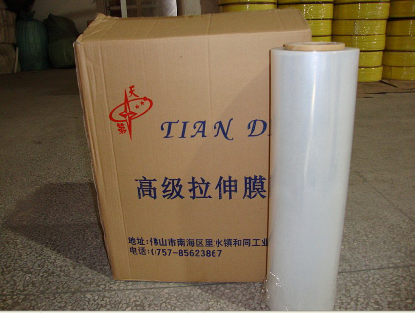 佛山拉伸膜,佛山缠绕膜:1.本公司生产的缠绕膜又叫弹性膜,还叫自粘膜、拉伸膜、打包膜。2.使用时可以利用薄膜自身具有的自粘弹性拉伸缠绕,靠薄膜表面的粘弹性和使用时使用的拉张力把商品紧紧地包裹起来,达到保护商品的目的。3.特点:良好的透明性、防尘性、防窃性,可以把数件不同形状的商品包裹在一起,避免丢失遗漏。4.缠绕包装膜可以用于运输包装,例如大型托盘的缠绕包装、集装箱、箱的缠绕包装,也可以用于短距离运输和销售包装,如日用品包装,不锈钢管、塑料管材、型材的缠绕包装,塑料装饰板、卷地板、卷地毯缠绕包装等。