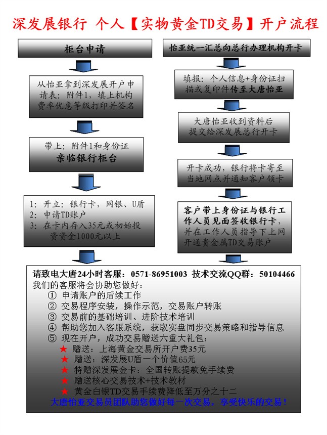 深发展, 工商银行,民生,兴业T+D黄金白银开户火热上线,全国任何银行网点可办理。本月深发展开户,成功交易赠送6重大礼包: