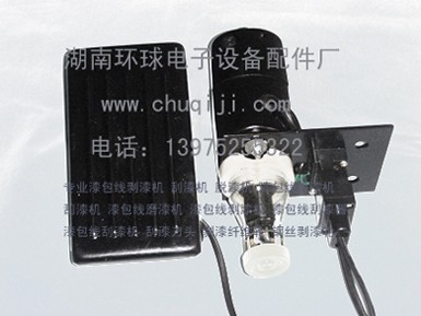 把去漆机固定在工作台上。将漆包线伸入刀架中央,踩下启动开关,电机随即转动。将漆包线慢慢地从刀架中拉出,去漆工作即完成。根据漆包线线径粗细不同,通过控制脚踏调速器调节刀片的转速,线径越细,转速需越低,线径越粗,则转速调越快。