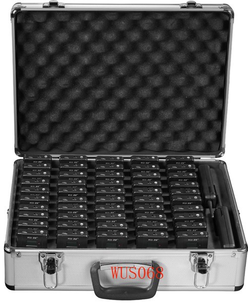 整套无线导览系统由一个数字无线发射器(或多个发射器)及多个数字接收器组成,讲解发射器由现场讲解员携带,来访客人每人使用一只接收器及与之配套的耳机来收听。接收器的数量可以达到上百个,参考使用半径约100米。同一场合可以容纳0-95组接待团体同时使用,组与组之间不会有任何干扰。还可以输入MP3语音发射,接收端可以手动置换信道和锁定信道功能,可以很灵活的编组使用。