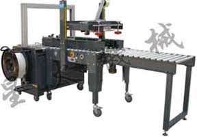 本系统由自动封箱机,全自动捆扎机和输送架组成,具有连续自动封箱及多道捆扎包装的功能,既减少占地面积,又降低包装成本。采用德国西门子公司LOGO!进行自动控制,工作可靠。操作方便,保养简单。封箱、捆扎机也可分别单独使用