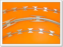 刀片刺网又名蛇腹网或刮刀型刺网,是一种近年来防护、隔离能力较强的新型产品。刀片用及耐腐蚀性的热镀锌钢板或不锈钢板做材料,由专用机械强力包附与热镀锌高碳钢丝或不锈钢丝做的芯线上。由于有着锋利美观的刀片刺、高强度的芯线,使本产品综合了防阻效果好、难破坏、安装美观方便快捷、耐老化等诸多优点。 产品广泛适用于高档住宅小区、重要仓库、监狱、边防军事重地等需要封锁围禁场所。依据安装方式可以分为:直线式刀片刺网、螺旋式刀片刺网,交叉式刀片刺网、平板式刀片刺网四种。